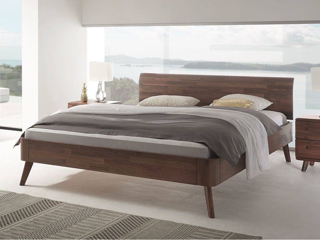 Lit en noyer massif haut de gamme, fabriqué par Hasena.