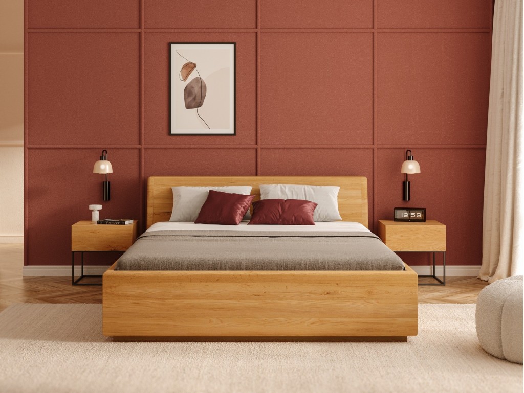 Lit coffre Edmonton en chêne massif haut de gamme.