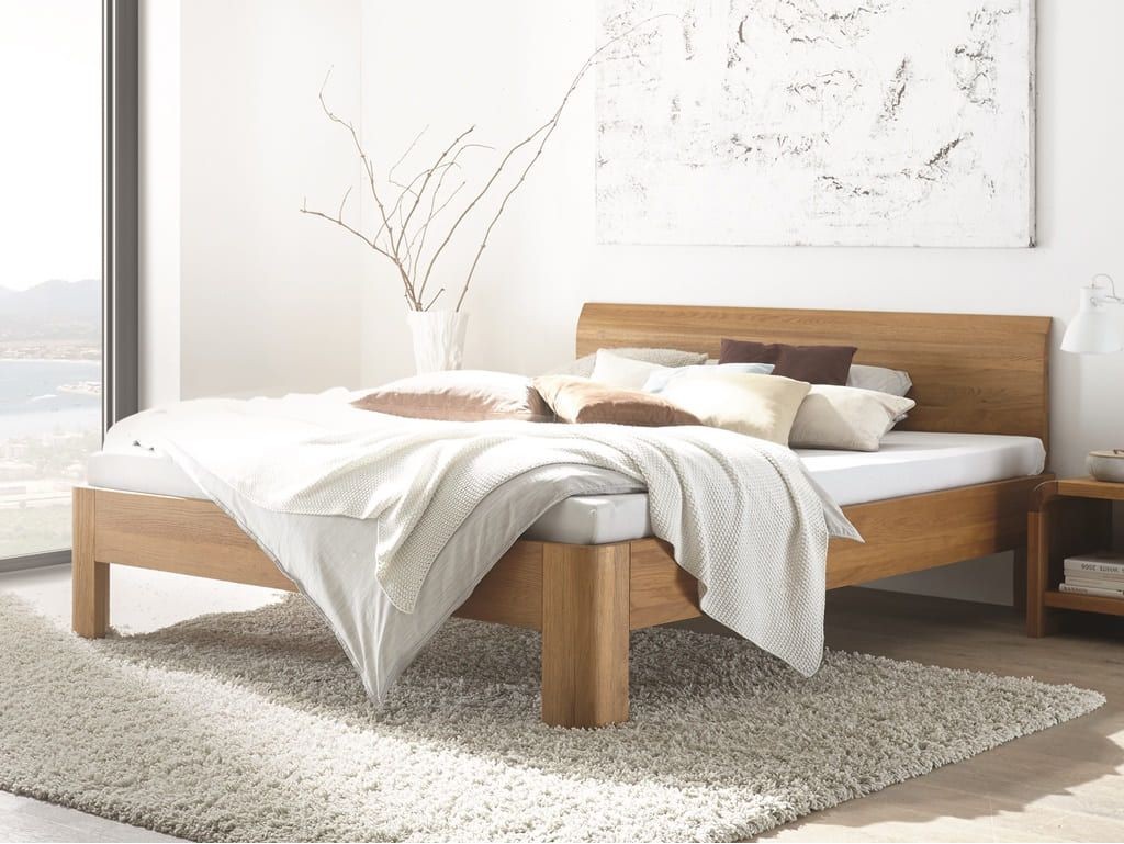 Lit en chêne massif haut de gamme, fabriqué par Hasena.